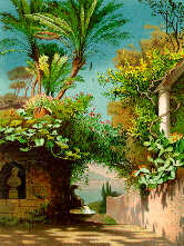 La madreselva e il glicine flessuosi, attorcigliandosi alle cancellate dei giardini, s'inerpicano di balcone in balcone e correndo lungo le facciate delle case, vanno a nasconderle sotto una coltre di verdura e di fiori; agave colossali, fichi d'india, palme, carrubbi; e olivi dalla foglia scura come quella dei lecci, ed ai quali l'acqua del mare bagna di spuma i tronchi sottili, slanciano le loro braccia in aria e si affollano sull'orlo dei dirupi, sollevando le loro chiome uno al disopra dell'altro, come se anch'essi volessero bearsi nella vista del mare e del paese divino che li circonda (p. 57).